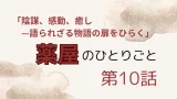 出発前、猫猫は薬屋のおやじに調合道具を持っていこうとするが、「医官じゃないんだ」とたしなめられる。その夜、猫猫がそっとおやじの寝床に近づくと、「もう子どもじゃないんじゃなかったのかい?」と声がかかる。猫猫は「今度は、いつでも帰ってこられるよ」と静かに応える――そこには、自分の意志で進む決意がこめられていた。